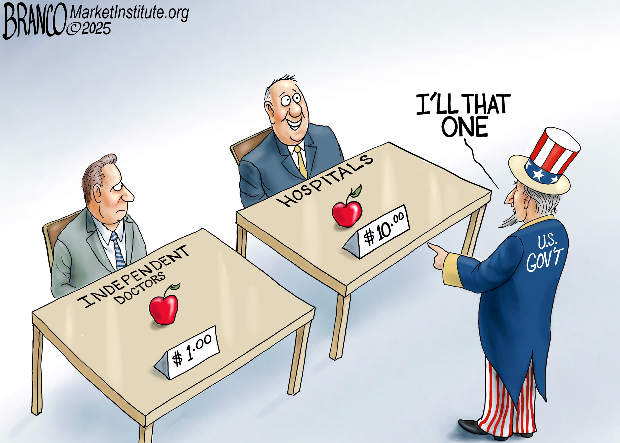 The Market Institute’s political cartoons use satire to spotlight government overreach, regulatory contradictions, and the unintended consequences policymakers prefer to ignore. With a free-market lens and a sense of humor, these illustrations make complex economic and policy debates accessible—and occasionally uncomfortable—for those who think government always knows best.